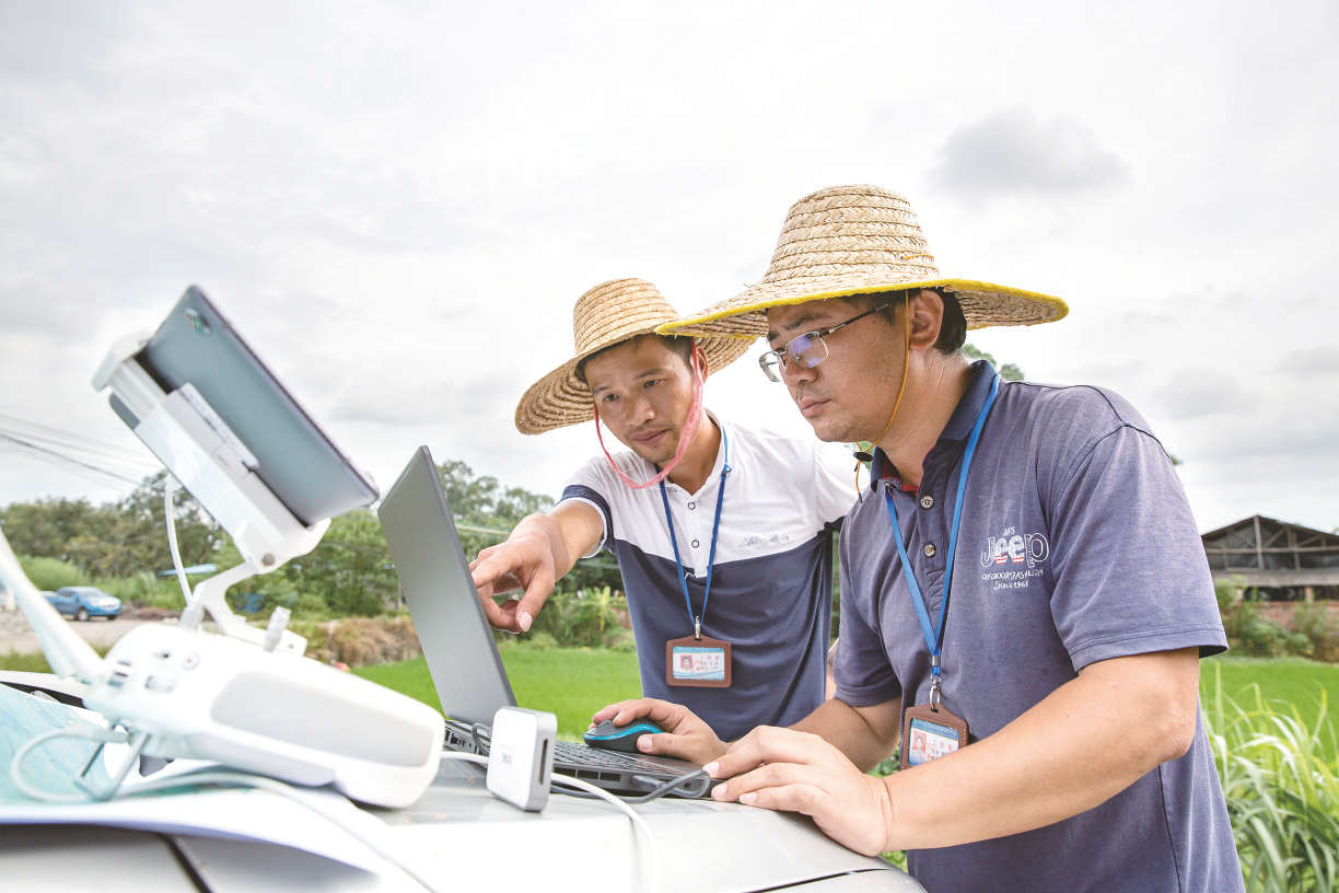 南寧市自然資源信息集團有限公司工作人員進行外業(yè)作業(yè)采集數(shù)據(jù)。(周燕芳 攝)