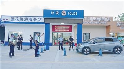 萬寧蓮花服務區(qū)執(zhí)法服務站實行多警種聯(lián)合執(zhí)勤。