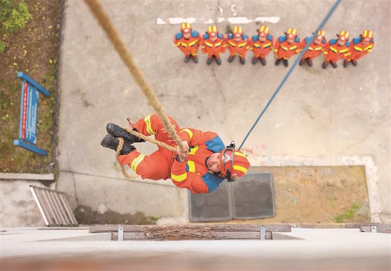 元旦假期,銅仁市玉屏侗族自治縣消防救援大隊(duì)消防員堅(jiān)持開展消防救援訓(xùn)練。 胡攀學(xué) 攝 (影像貴州)