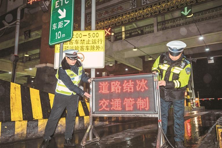 1月2日,大方縣迎來今冬首場降雪,畢節(jié)市公安局交通管理支隊(duì)高速一大隊(duì)迅速行動(dòng),全面開展抗凝保暢工作。 何志剛 攝 (影像貴州)