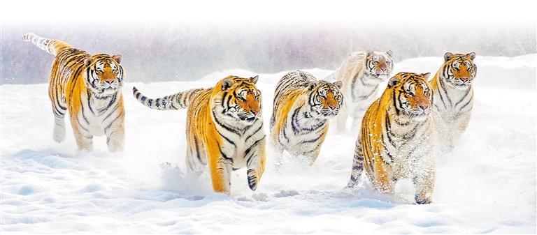 2021年12月23日,牡丹江市海林市橫道河子?xùn)|北虎林園,老虎們在雪地上嬉鬧。橫道河子?xùn)|北虎林園是世界最大的東北虎人工繁育基地,在東北虎種群保護、野化訓(xùn)練等方面發(fā)揮了重要作用。趙日偉攝(中經(jīng)視覺)