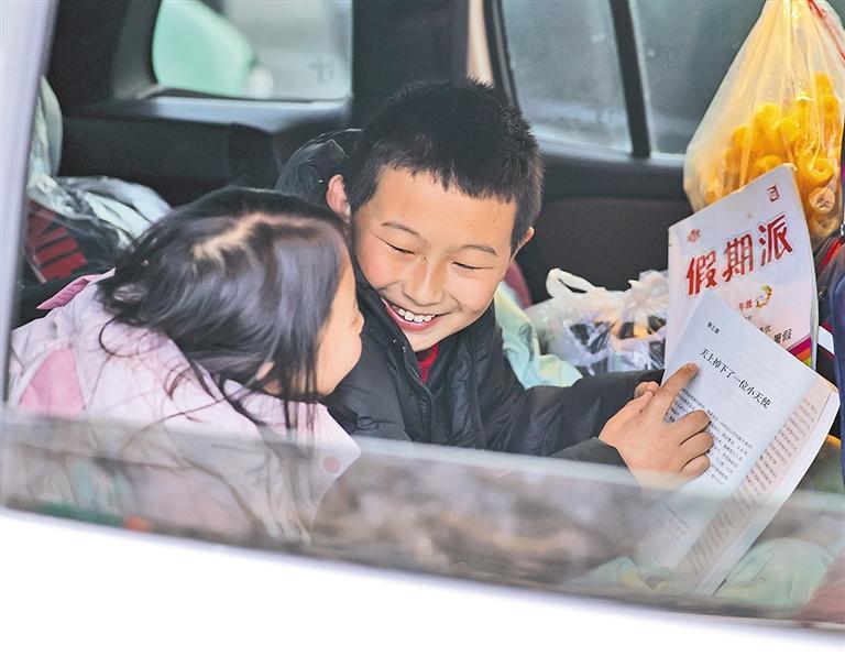 2月22日,甘肅省定西服務(wù)區(qū)內(nèi),小朋友在旅途間隙閱讀。侯崇慧攝(中經(jīng)視覺(jué))