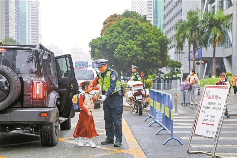 3月2日,2026年春季新學期開學首日恰逢周一早高峰,通勤與送學車流“雙疊加”,學校周邊道路交通壓力增大。為守護學生安全入校、保障周邊交通秩序順暢,深圳交警全面啟動新學期“護學”行動,以“地面疏導+空中巡查”立體化管理模式,加強警力值守、無人機護航、現(xiàn)場疏導、安全勸導,多措并舉守護新學期校園交通安全。(深圳特區(qū)報記者 解樹森 賴犁 攝影報道)