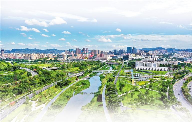 水環(huán)境改善方面,堅(jiān)持“一河一策”系統(tǒng)治理,綜合運(yùn)用管網(wǎng)完善、廠站擴(kuò)能、問(wèn)題排口精準(zhǔn)治理、生態(tài)補(bǔ)水等措施,21個(gè)國(guó)省考斷面連續(xù)三年達(dá)優(yōu)率100%,全市優(yōu)良河長(zhǎng)占比由2020年的22.9%提升至90.1%。水清岸綠、魚(yú)翔淺底,茅洲河、龍崗河、觀瀾河、大沙河等多條碧道環(huán)境優(yōu)美,成為市民喜愛(ài)的“網(wǎng)紅”親水休閑打卡點(diǎn)。
