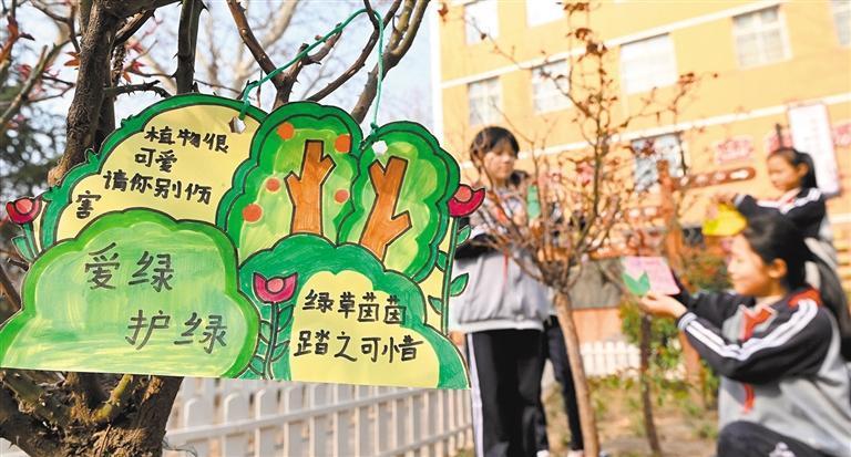 今年3月12日是我國第48個植樹節(jié)。3月12日,河北省邯鄲市復興區(qū)鐵路小學學生在小樹上掛上心愿卡。郝群英攝(中經視覺)