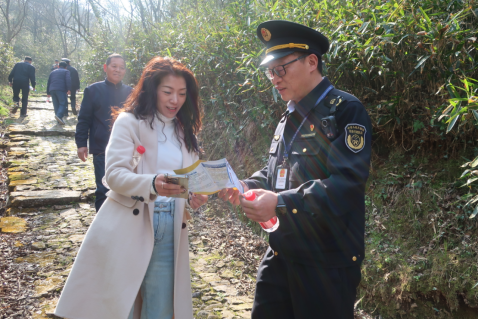 執(zhí)法人員向登山客進行普法宣傳