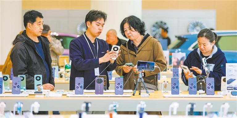 3月25日,山東省青島市樂客城華為智能生活館,消費(fèi)者在選購手機(jī)等“國補(bǔ)”產(chǎn)品。張鷹 攝(中經(jīng)視覺)
