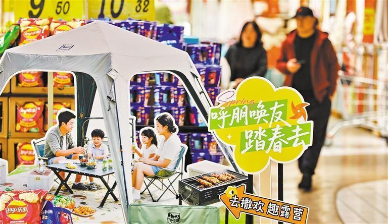 3月14日,浙江省嘉興市南湖區(qū)一大型商超,消費(fèi)者在選購露營商品。金鵬 攝(中經(jīng)視覺)