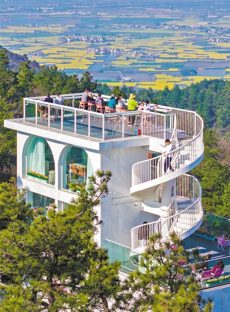 3月13日,安徽省蕪湖市峨橋鎮(zhèn),游客在一家山頂咖啡館欣賞油菜花田美景。當(dāng)?shù)赝ㄟ^“生態(tài)+消費(fèi)+體驗”模式,將自然風(fēng)光轉(zhuǎn)化為文旅消費(fèi)動能。肖本祥 攝(中經(jīng)視覺)