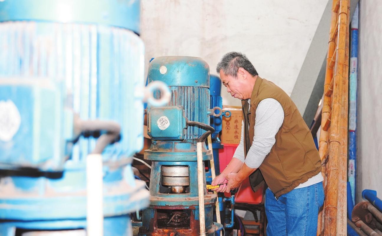 在海山廠宿舍,業(yè)主正在檢修小區(qū)的水泵。記者 楊忠凱 攝