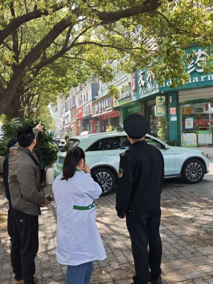 4月7日,執(zhí)法中隊迅速與園林綠化部門取得聯(lián)系,組建專項工作小組,一同前往現(xiàn)場勘查摸排。工作人員耐心傾聽商戶訴求,逐戶查看樹木生長情況,結(jié)合店鋪位置、招牌高度和樹木長勢,與商戶、園林綠化工作人員共同商議,精準(zhǔn)確定修剪范圍和修剪方案——既要徹底解決枝葉遮擋招牌、影響采光的問題,又要最大限度保護樹木生長,避免過度修剪破壞城市綠化景觀,實現(xiàn)“助企便民”與“城市美化”的雙贏。同時,考慮到修剪作業(yè)可能影響周邊交通和行人安全,新碶街道執(zhí)法中隊提前規(guī)劃作業(yè)區(qū)域,安排執(zhí)法人員現(xiàn)場協(xié)調(diào)樹下停放車輛駛離,設(shè)置安全警示標(biāo)識,維護現(xiàn)場秩序,確保修剪工作安全有序推進。