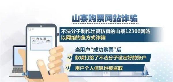 山寨購票網(wǎng)站詐騙:不法分子制作出高仿真的山寨12306網(wǎng)站,以網(wǎng)絡(luò)釣魚方式詐騙,這些網(wǎng)站在頁面布局、域名上與12306網(wǎng)站非常相似。當(dāng)用戶“成功購票”后,款項(xiàng)打給了不法分子設(shè)定好的賬戶,用戶個(gè)人信息也被盜取。