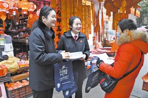 新春佳節(jié),大街小巷熱鬧非凡。近日,重慶市梁平區(qū)人民法院干警走進(jìn)轄區(qū)多個(gè)集市開展法治宣傳,為群眾送上“法治年貨”,增添不一樣的年味?;顒?dòng)中,干警們通過發(fā)放宣傳單和普法小卡片,向群眾講解養(yǎng)老詐騙、電信網(wǎng)絡(luò)詐騙的作案方式及識(shí)別技巧,提醒群眾在春節(jié)期間守好“錢袋子”。(劉洋 韓佳慧 蔣永莉)