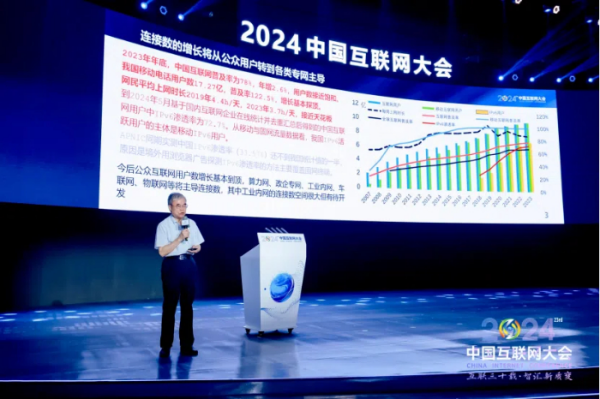 7月9日,由中國互聯(lián)網(wǎng)協(xié)會主辦的2024(第二十三屆)中國互聯(lián)網(wǎng)大會在北京國家會議中心開幕。大會以“互聯(lián)三十載 智匯新質(zhì)變”為主題,工業(yè)和信息化部總工程師趙志國、北京市人民政府副秘書長許心超出席開幕式并致辭,原郵電部部長、原信息產(chǎn)業(yè)部部長吳基傳,原信息產(chǎn)業(yè)部部長王旭東,工業(yè)和信息化部原部長、中國工業(yè)經(jīng)濟(jì)聯(lián)合會會長李毅中,第十四屆全國政協(xié)常委、經(jīng)濟(jì)委員會副主任,工業(yè)和信息化部原部長苗圩,中國工程院院士、中國互聯(lián)網(wǎng)協(xié)會專家咨詢委員會主任鄔賀銓,中國通信學(xué)會名譽(yù)理事長、國際電信聯(lián)盟前秘書長趙厚麟,中國電子學(xué)會理事會黨委書記,工業(yè)和信息化部原總工程師張峰,工業(yè)和信息化部信息通信科技委常務(wù)副主任兼秘書長、工業(yè)和信息化部原總工程師韓夏,中國互聯(lián)網(wǎng)協(xié)會副理事長兼秘書長、中國信息通信研究院院長余曉暉等多位重要嘉賓出席開幕式。中國互聯(lián)網(wǎng)協(xié)會理事長尚冰致歡迎辭。