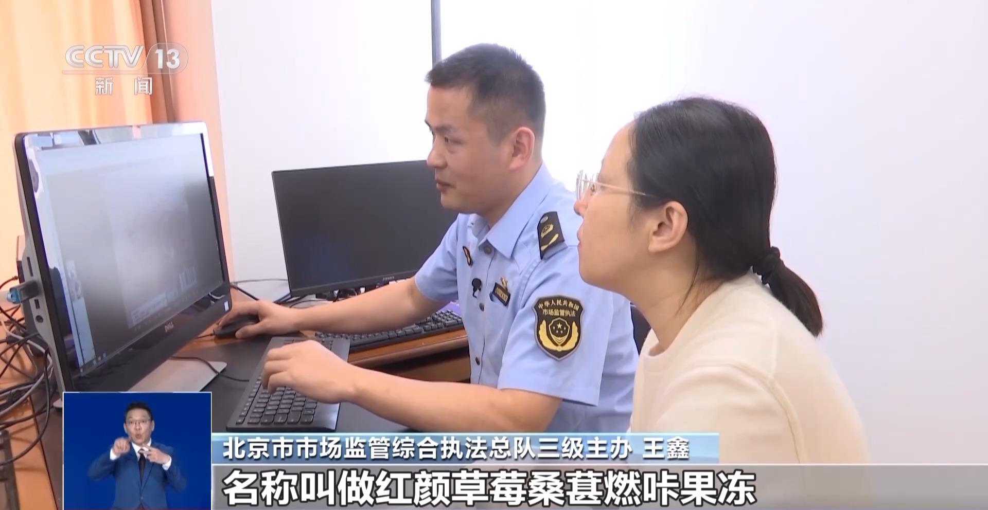北京市市場監(jiān)管綜合執(zhí)法總隊(duì)三級主辦 王鑫:我們可以看到這款產(chǎn)品的名稱叫作紅顏草莓桑葚燃咔果凍,它有食品生產(chǎn)許可證的編號,沒有保健食品的藍(lán)帽子標(biāo)志,也沒有藥品的生產(chǎn)許可證,它只是一款普通的食品。