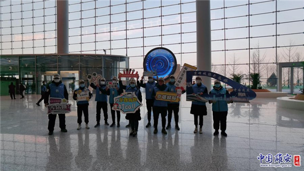 志愿者在雄安站迎接旅客進(jìn)站。中國雄安官網(wǎng)記者劉東堯 攝