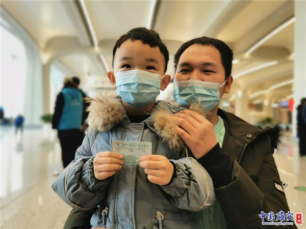 乘客在雄安站一層候車大廳展示車票。中國雄安官網(wǎng)記者劉東堯 攝