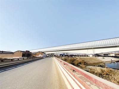 京雄城際鐵路上,橫跨霸州市北落店村的世界首例時速350公里的高速鐵路橋梁全封閉聲屏障。河北日報通訊員 盧達(dá) 攝