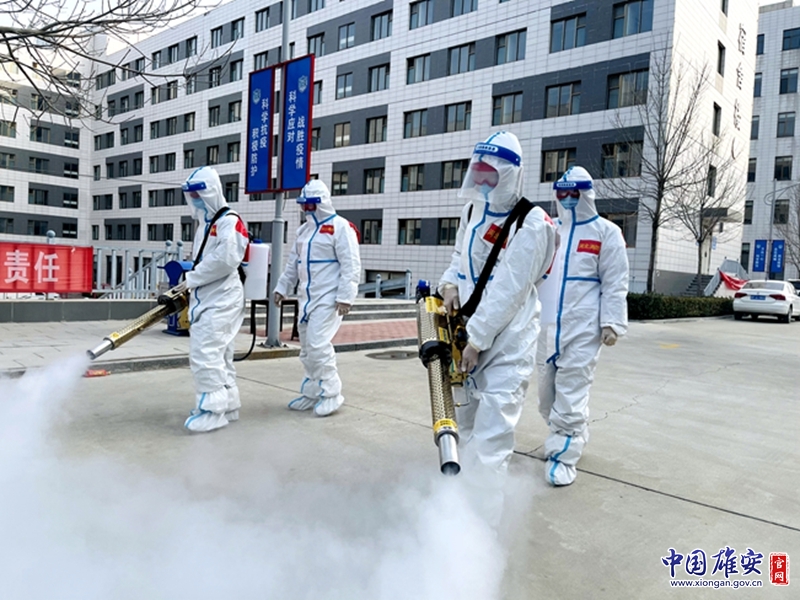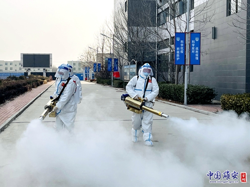 安新縣消防救援大隊(duì)隊(duì)員正在進(jìn)行消殺作業(yè)。中國(guó)雄安官網(wǎng)發(fā)