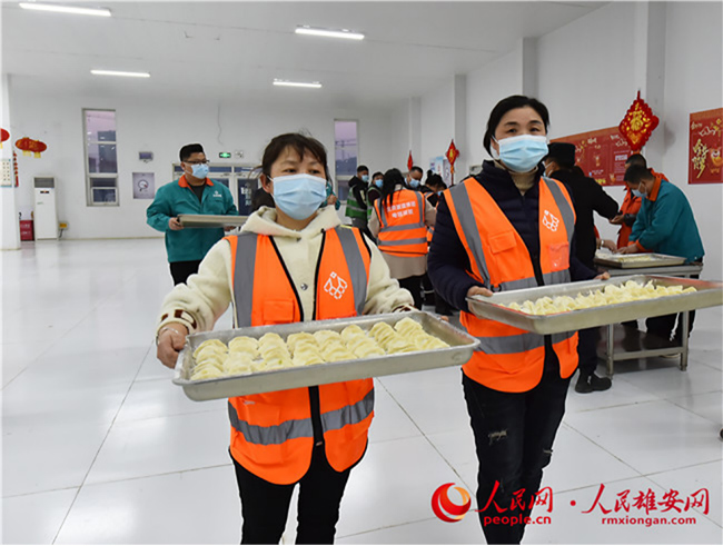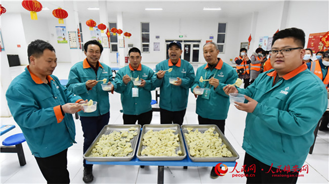 雄安新區(qū)容東片區(qū)B1組團(tuán)安置房項(xiàng)目留雄過年建設(shè)者吃餃子過大年。