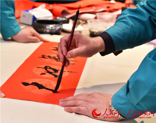 雄安新區(qū)容東片區(qū)B1組團(tuán)安置房項(xiàng)目留在雄安過年建設(shè)者寫春聯(lián)。