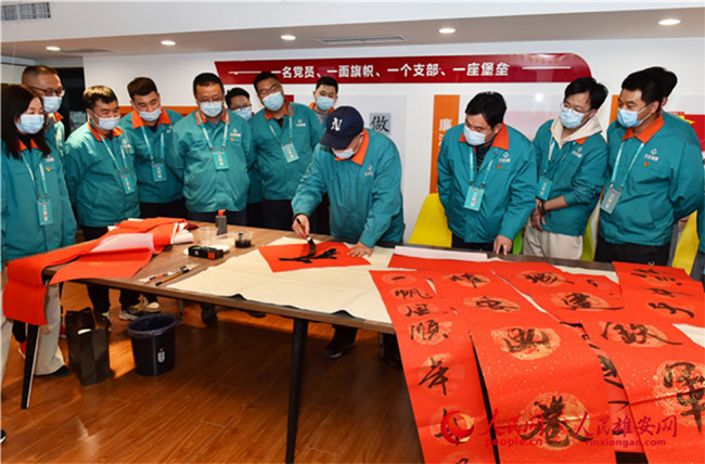 雄安新區(qū)容東片區(qū)B1組團(tuán)安置房項(xiàng)目留雄過年建設(shè)者寫春聯(lián)。