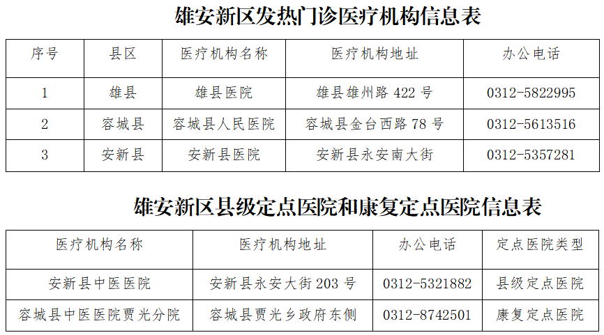 雄安新區(qū)發(fā)熱門診、定點醫(yī)院、康復(fù)醫(yī)院信息公示