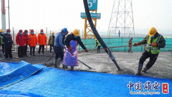 建設(shè)單位中國雄安集團生態(tài)建設(shè)公司把該項目作為一號工程,在新區(qū)黨工委、管委會和雄安集團領(lǐng)導(dǎo)下,認真貫徹落實河北省委、省政府決策部署,全力保質(zhì)量、保進度、保安全、保成本、保廉潔,堅決完成建設(shè)施工任務(wù)。施工單位北京城建集團于2020年12月4日收到中標通知書后,克服了時間緊、任務(wù)重以及冬季施工難度大等困難,發(fā)揚鐵軍精神,僅用2個多月時間就完成春節(jié)前主體結(jié)構(gòu)封頂?shù)募榷ㄈ蝿?wù)。