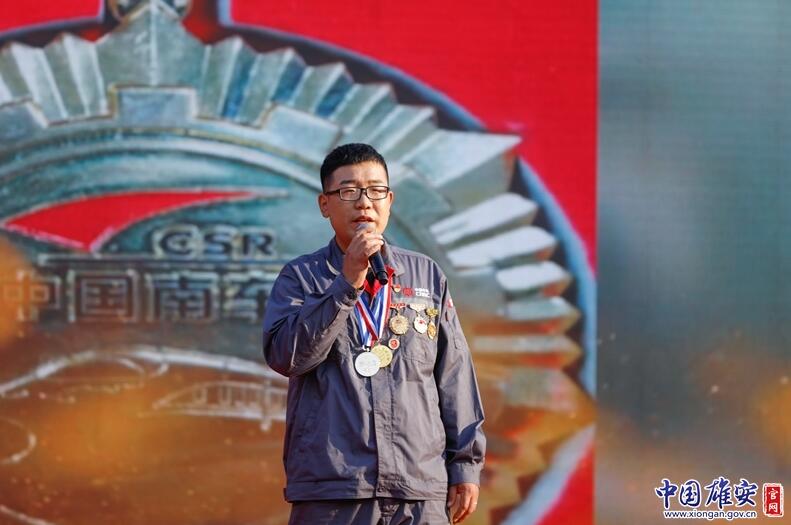 來自中車石家莊車輛有限公司的馬龍飛向觀眾講述了《大國工匠是這樣煉成的》的故事。中國雄安官網(wǎng)記者毛鶴然 攝
