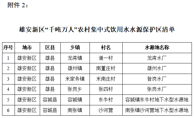 2.雄安新區(qū)“千噸萬人”農(nóng)村集中式飲用水水源保護區(qū)清單