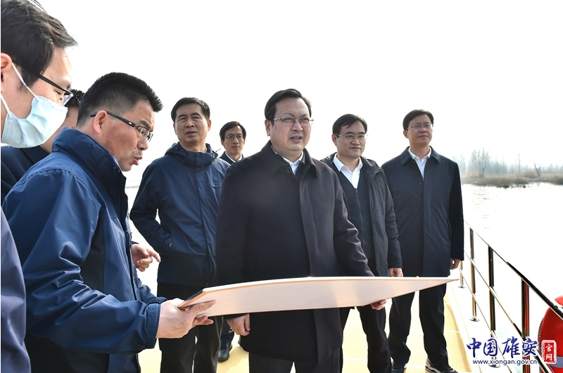 春日的白洋淀波光粼粼、水天一色、飛鳥翔集,一派生機勃勃的景象。張國華一行從安新縣白洋淀旅游碼頭乘船,先后來到正在實施的白洋淀內(nèi)部水流通道疏浚(百淀聯(lián)通)試點工程、燒車淀國控監(jiān)測點等處查看白洋淀生態(tài)環(huán)境修復(fù)保護、河道清理整治等情況,認真聽取相關(guān)工作進展情況匯報。他強調(diào),要始終把白洋淀生態(tài)環(huán)境修復(fù)保護作為重大政治任務(wù),擔(dān)當(dāng)起治淀、護淀、興淀責(zé)任,不斷鞏固提升白洋淀生態(tài)環(huán)境修復(fù)保護來之不易的良好局面。要堅持補水、治污、防洪“三位一體”協(xié)調(diào)推進,加快推進生態(tài)清淤等治理工程,推動白洋淀水質(zhì)穩(wěn)中向好、水生態(tài)持續(xù)改善。要強化水資源優(yōu)化配置和管理,加快推進百淀聯(lián)通工程,打通淀區(qū)水流水系通道,優(yōu)化補水方式,提升水動力條件,讓白洋淀的水“活”起來。要以生態(tài)、休閑、紅色旅游為主題,推進白洋淀景區(qū)提檔升級,做好景區(qū)開放各項準備工作,努力打造具有淀區(qū)特色的旅游文化品牌。要壓實各級河湖長責(zé)任,全力推動新區(qū)河湖長制工作“有名有責(zé)”“有能有效”,持續(xù)開展排查整治,不斷改善河湖生態(tài)質(zhì)量,讓新區(qū)水更清、岸更綠、景更美。