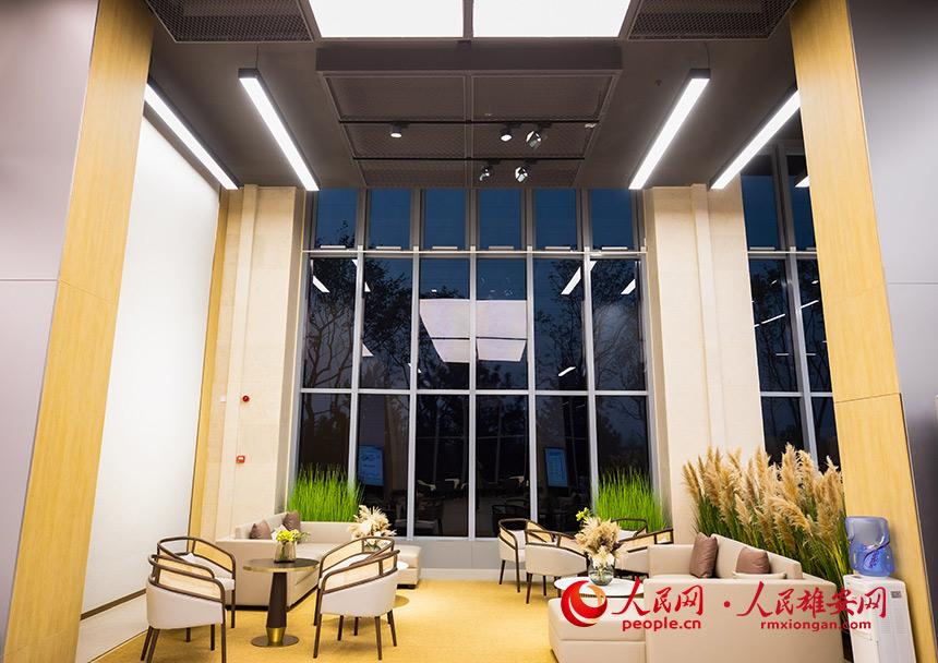 圖為啟動(dòng)區(qū)綜合服務(wù)中心承接疏解服務(wù)大廳內(nèi)洽談區(qū)。人民網(wǎng) 李兆民攝