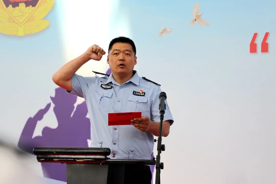 開幕式現場,全體人員隊列整齊、警容嚴整,莊嚴奏唱《中華人民共和國國歌》,裁判員代表和運動員代表分別進行宣誓。