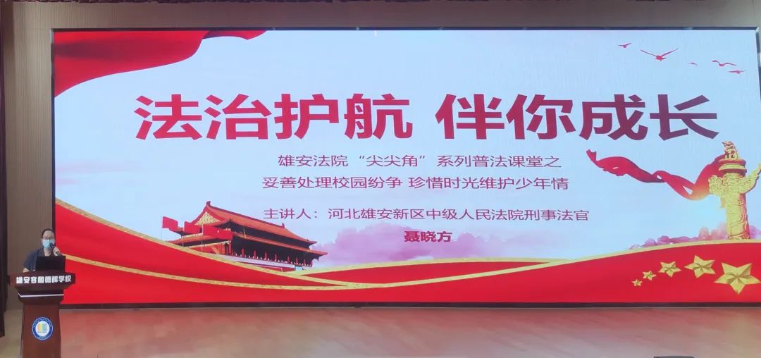青少年是祖國的未來,民族的希望,青少年的素質(zhì)關(guān)系到祖國的前途和命運。為持續(xù)貫徹全國法院第七次少年法庭工作會議精神,教育引導(dǎo)新區(qū)少年兒童形成“尊法、學法、守法、用法”的法律意識,近日,雄安中院的法官們分別走進雄安容和德輝學校和容和紅杰初級中學,面向七百余名在校師生,開啟了以“法治護航 伴你成長”為主題的“雄法尖尖角”系列普法課堂。
