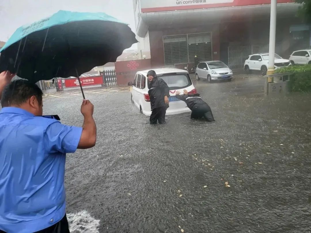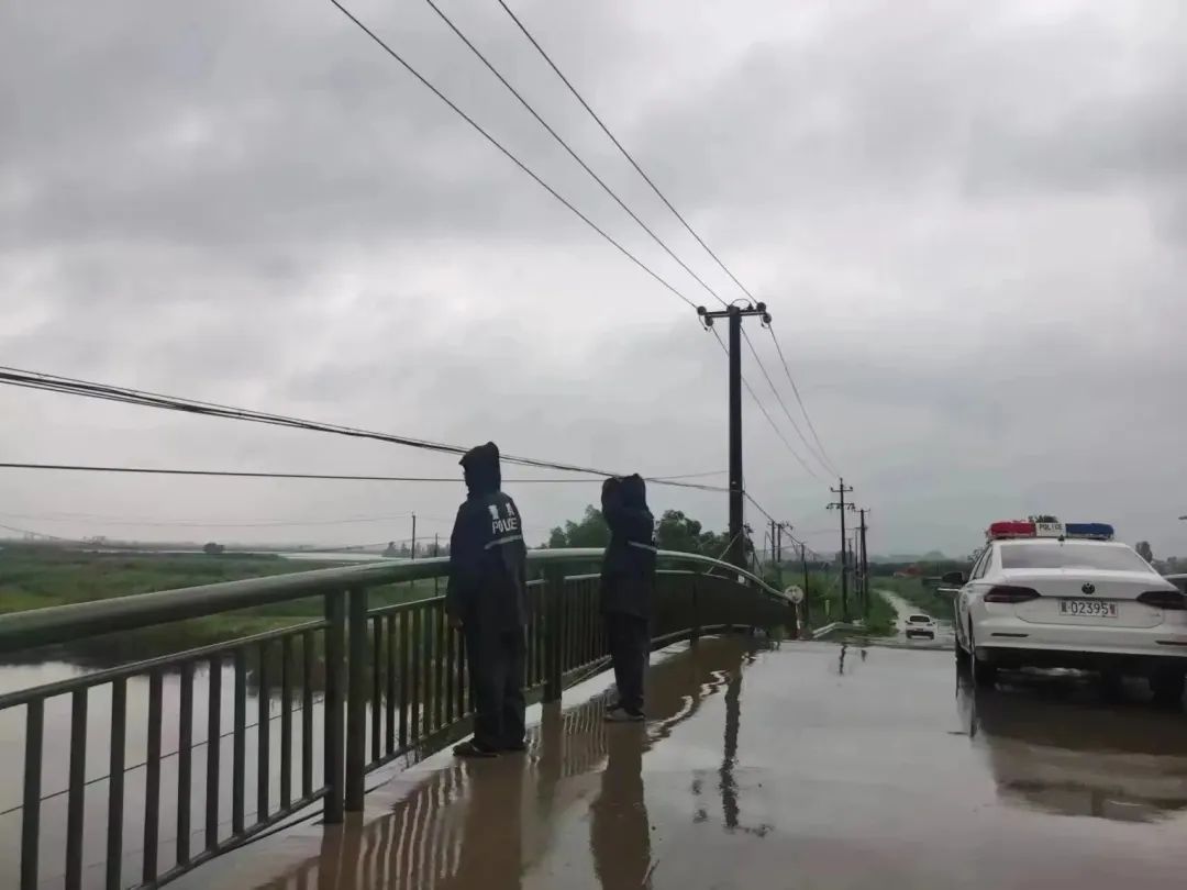 暴雨中,執(zhí)勤民輔警縱然全身濕透,依然堅(jiān)守在各自崗位,及時(shí)排查積水隱患、推移拋錨汽車、疏導(dǎo)分流車輛、幫助受困群眾。在積水嚴(yán)重位置安排專人執(zhí)勤,發(fā)現(xiàn)積水影響交通通行的,實(shí)施交通管制,提醒過(guò)往車輛安全駕駛,確保人民群眾生命財(cái)產(chǎn)安全。