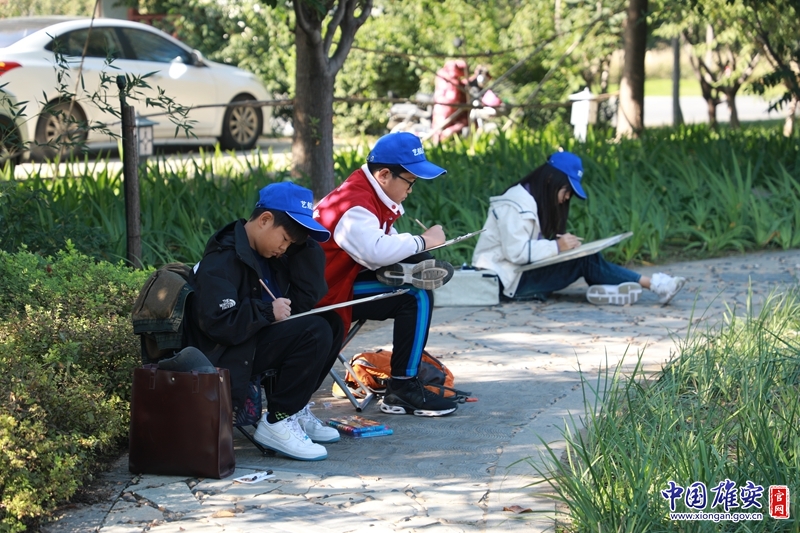 孩子們在細(xì)心描繪心中的美景。雄安郊野公園供圖