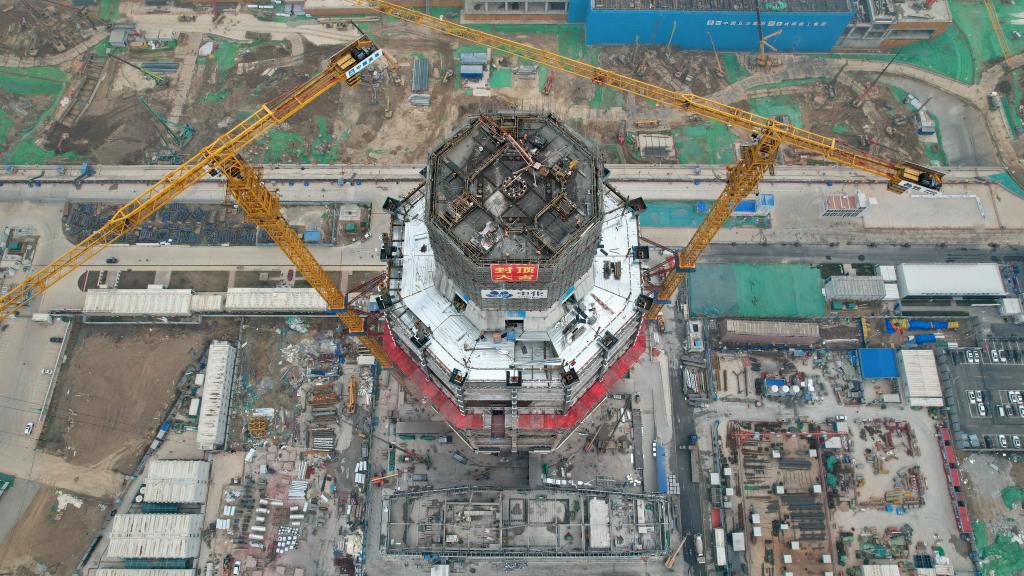 3月27日拍攝的中國中化大廈建設(shè)現(xiàn)場(無人機(jī)照片)。新華社記者牟宇 攝