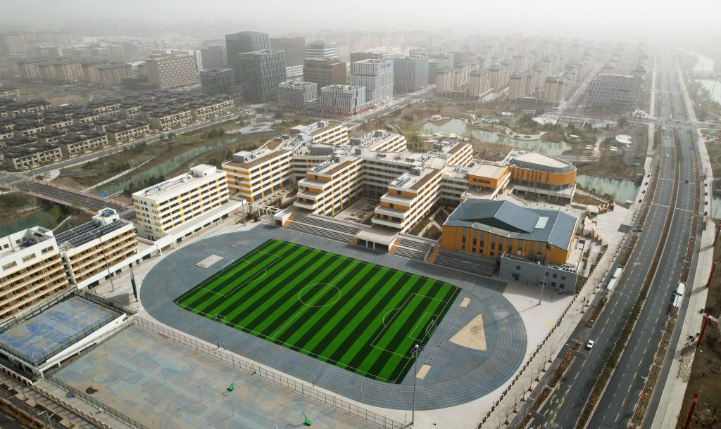雄安新區(qū)容東片區(qū)內(nèi)的學(xué)校(3月28日攝,無人機(jī)照片)。新華社記者楊世堯 攝