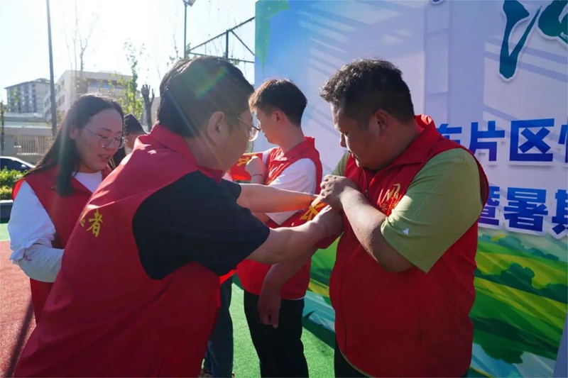 活動(dòng)現(xiàn)場(chǎng),悅?cè)菪W(xué)志愿者代表朱皓萱宣讀《“珍愛(ài)生命,預(yù)防溺水”倡議書(shū)》,與會(huì)領(lǐng)導(dǎo)為各組團(tuán)護(hù)河行動(dòng)志愿服務(wù)隊(duì)護(hù)河長(zhǎng)佩戴了袖章,容東管委會(huì)相關(guān)負(fù)責(zé)同志宣布暑期“護(hù)河行動(dòng)”活動(dòng)正式啟動(dòng)。