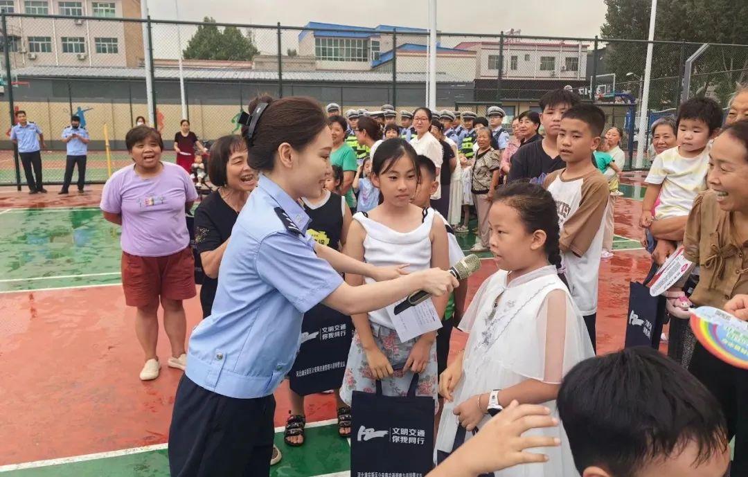 現(xiàn)場(chǎng),鐵騎隊(duì)員的交通指揮手勢(shì)演示,展現(xiàn)了交通警察的風(fēng)采。民警通過(guò)向村民講解指揮手勢(shì)的重要作用、農(nóng)村道路常見(jiàn)交通違法行為的危害,強(qiáng)調(diào)了服從交警指揮的重要性。有獎(jiǎng)問(wèn)答環(huán)節(jié)更是將整場(chǎng)活動(dòng)推向了高潮,現(xiàn)場(chǎng)氛圍熱烈,在互動(dòng)中讓“一盔一帶”、未滿(mǎn)12周歲禁止騎自行車(chē)、未滿(mǎn)16周歲禁止騎電動(dòng)自行車(chē)等交通安全知識(shí)深入民心。