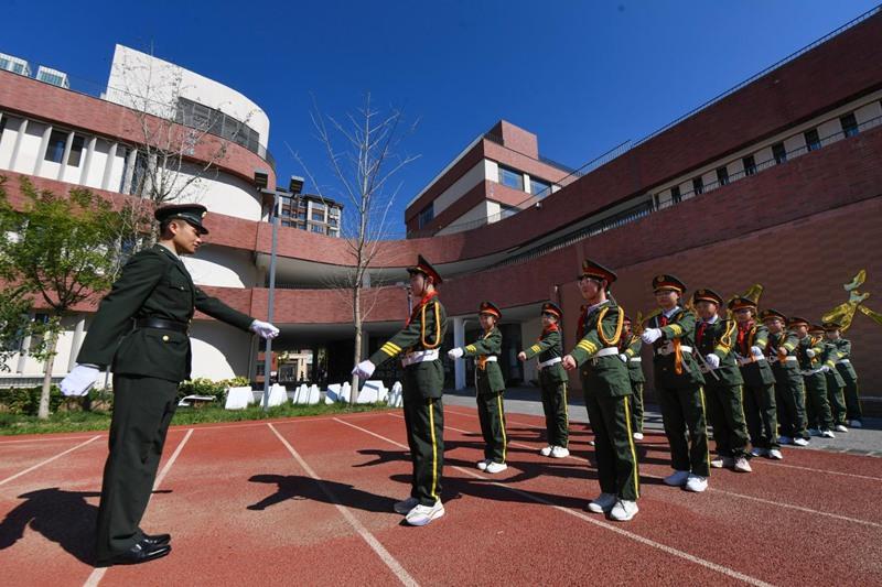 在雄安容和樂(lè)民小學(xué),退役軍人與學(xué)校國(guó)旗護(hù)衛(wèi)隊(duì)一起舉行莊嚴(yán)的升國(guó)旗儀式。學(xué)生們隨后集體參觀國(guó)防特種作業(yè)技術(shù)車(chē)輛,退役軍人組織學(xué)校師生開(kāi)展軍事題材互動(dòng)游戲。