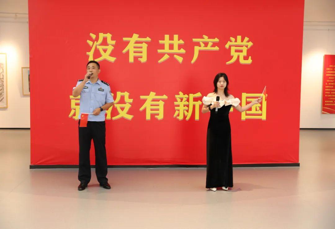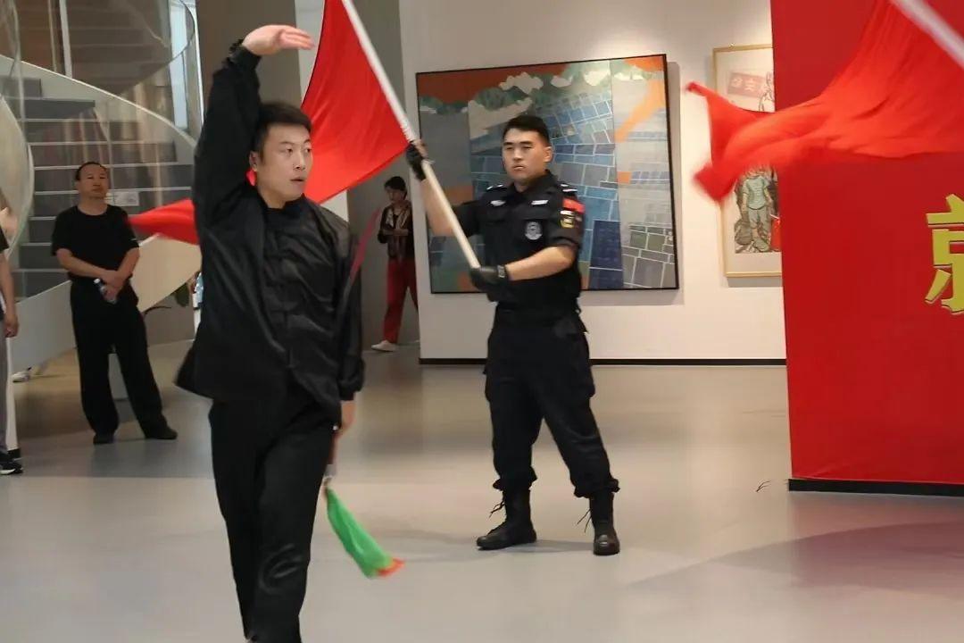 觀展結(jié)束后,伴隨著“我和我的祖國,一刻也不能分割。無論我走到哪里,都流出一首贊歌……”歌聲的響起,參展人員移步展廳中央,雄安公安文聯(lián)的表演者們伴隨著莊嚴(yán)激昂的旋律依次從人群中走出,《我和我的祖國》《追尋》《多情的土地》《我愛你中國》,一首首振奮人心的歌曲,唱出了慶祝新中國75周年華誕的喜悅,唱出了對祖國的自豪與驕傲。
