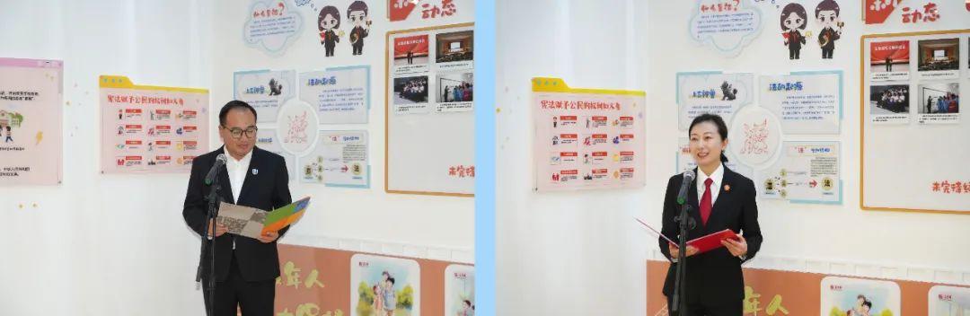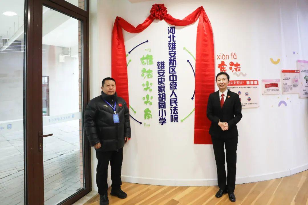 為充分發(fā)揮法治副校長職能延伸作用,做好新區(qū)青少年普法宣傳教育工作,切實增強新區(qū)中小學(xué)生法律意識和法治觀念,12月12日,雄安中院與雄安史家胡同小學(xué)聯(lián)合開展“雄法尖尖角”法治角揭牌活動。雄安中院黨組副書記、副院長李靜靜、雄安史家胡同小學(xué)校長張欣欣、校長助理化國輝出席活動并致辭,雄安中院少審?fù)ジ删?、雄安史家胡同小學(xué)師生代表參加活動。