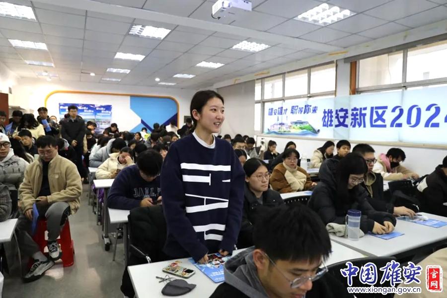 “雄安雄才 職等你來”雄安新區(qū)2024年校園引才宣講活動(dòng)現(xiàn)場。中國雄安官網(wǎng)發(fā)