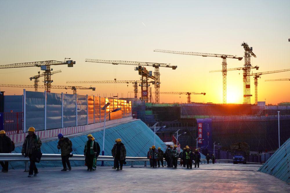 落日余暉下的雄安新區(qū)國貿(mào)片區(qū)建設現(xiàn)場(2025年1月15日攝)。新華社記者 牟宇 攝