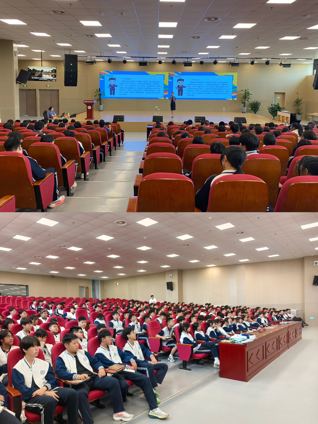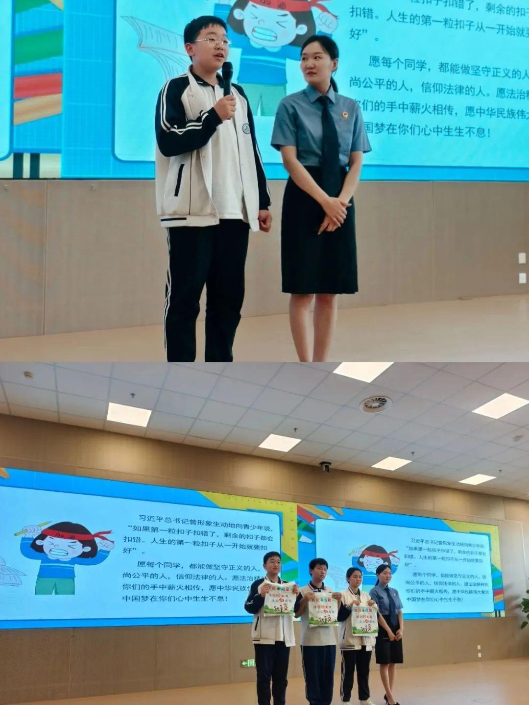 “同學(xué)們,很高興又與大家見面了。同學(xué)們的身心健康,是家長和老師關(guān)注的重點,更是我們未成年法治工作者關(guān)注的重點,勿以惡小而為之,小惡放任會發(fā)展成大錯。今天,我們的法治課就來幫助同學(xué)們了解未成年人常見的違法犯罪的類型、行為后果、產(chǎn)生原因、如何預(yù)防?!敝v座中,檢察官結(jié)合中學(xué)生年齡特點和認知水平,選取校園欺凌、盜竊、聚眾斗毆等貼近學(xué)生生活的真實案例,用通俗易懂的語言剖析案件背后的法律關(guān)系,點明未成年人犯罪的危害及后果。檢察官通過“案例+法條”的形式,讓學(xué)生直觀認識到“行為的尺度”,引導(dǎo)同學(xué)們知敬畏、守分寸、明后果、懂自護,樹立良好的行為規(guī)范,遠離違法犯罪和不法侵害。