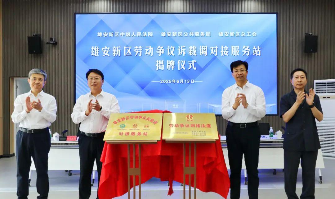 為進(jìn)一步深化協(xié)作,推動勞動爭議多元化解工作提質(zhì)增效,提升雄安新區(qū)勞動者權(quán)益保護(hù)水平,6月13日,河北雄安新區(qū)中級人民法院、雄安新區(qū)公共服務(wù)局、雄安新區(qū)總工會聯(lián)合成立了雄安新區(qū)首批勞動爭議訴裁調(diào)對接服務(wù)站和首家勞動爭議網(wǎng)格法庭。
