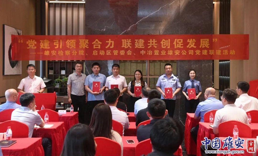 活動現(xiàn)場,啟動區(qū)管委會、雄安檢察分院共同為德潤社區(qū)黨員先鋒隊、雄安檢察分院青年先鋒隊授旗,為社區(qū)法治疏解議事會和法律顧問頒發(fā)聘書,開展黨員“雙報到”,并為黨建聯(lián)建基地揭牌。