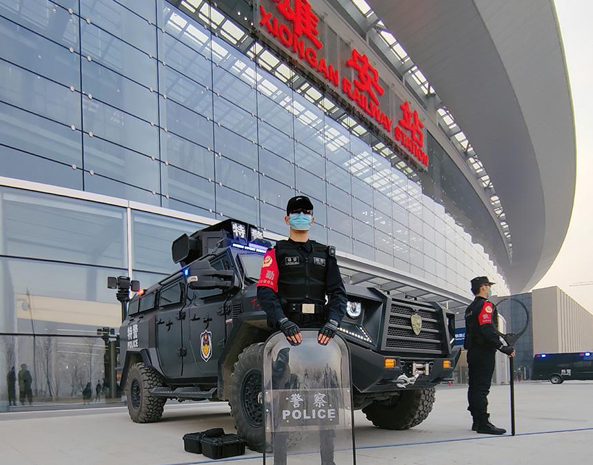 特警在雄安站廣場執(zhí)勤。雄安新區(qū)公安局供圖