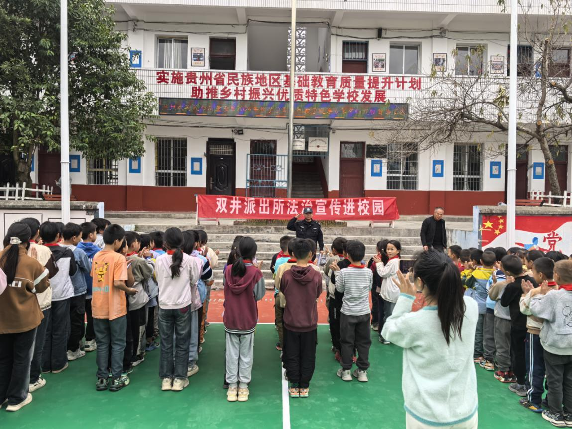 為幫助青少年樹立尊法學法守法用法的意識,增強青少年的自我保護能力,近日,貴州省黔東南州施秉縣公安局雙井派出所組織警力到轄區(qū)學校開展法治宣傳進校園活動。